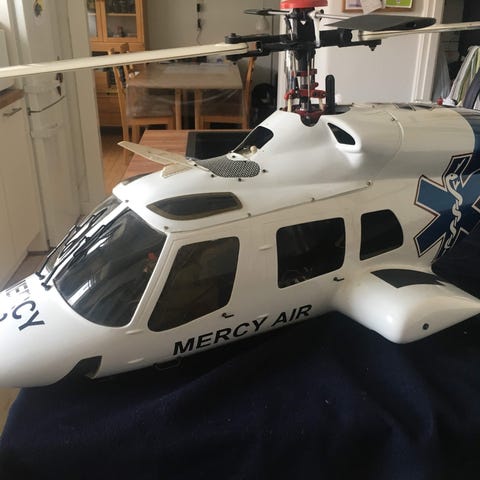 REELY EP HUGHES-500, klasse 470, 2,4 GHz, ny, færdigsamlet og klar til at flyve med et 11,1V Lipo Mah-batteri. Lakeret glasfiberhus, 30A ESC flyvecontroller, Headling Lock Gyro MC-800, 3200 kV børsteløs motor, opgraderede kulfiberrotorblade, 6-kanals 2,4 GHz fjernbetjening, vejer 806 g, INGEN BATTERI er inkluderet i dette salg, du skal købe et 11,1v batteri, ny i æske, men under en prøveflyvning tabte jeg det ved et uheld, så kalechen gik i stykker. Den er repareret nu. Billede vist. Det påvirker ikke flyvningen.