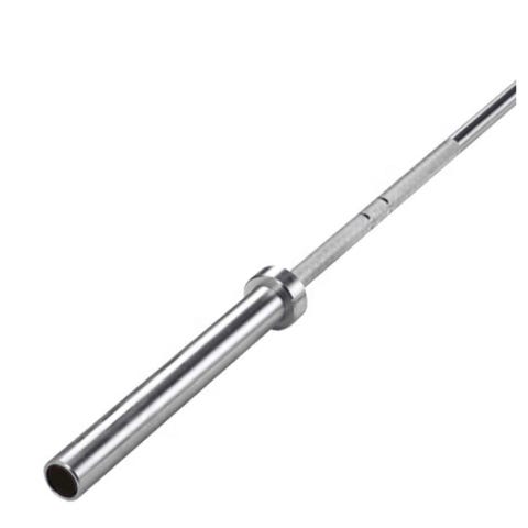 Ukendt vægtstang lavet af stål med en længde på cirka 220 cm. Vægtstangen er velegnet til styrketræning og kan anvendes til forskellige øvelser som bænkpres, squat og dødløft.