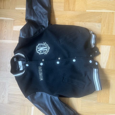 H&M sort jakke til drenge i størrelse 158. Jakken har en mørk farve med mønstrede reflekterende detaljer og lynlås foran. Materialet er velegnet til udendørs brug og beskytter mod vind og vejr. Jakken har en hætte og lommer med lynlås.