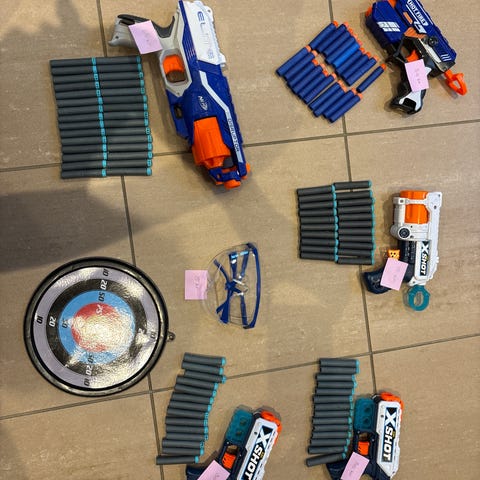 Sættet inkluderer flere skumprojektiler til brug med pistolerne.