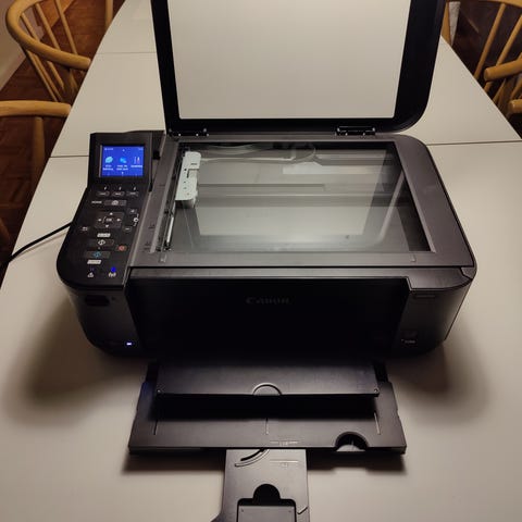 Canon MG6350 printer with color printing capabilities. Features include wireless connectivity, touch screen interface, and duplex printing. Suitable for home or office use.