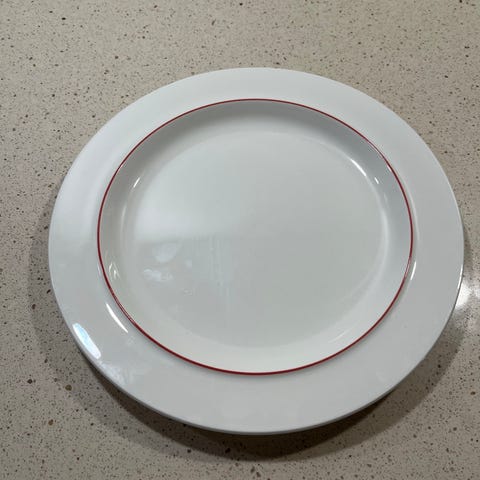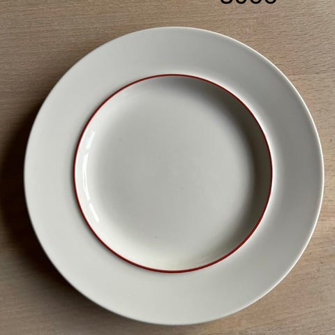 Middagstallerken ( 3069 ) i Rødkant/Rødtop , fajance fra Royal Copenhagen, 9 stk.