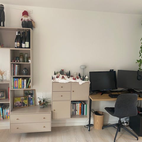 Der medfølger to kasser med skabslåger og hylder, så man selv kan bygge møblet som man kan lide det. Du er velkommen til at byde en pris.