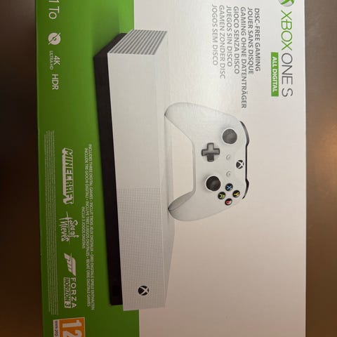 Microsoft Xbox One S spilkonsol i hvid farve. Konsollen har indbygget harddisk og HDMI-udgang. Den leveres med to trådløse controllere i matchende hvid farve, et hdmi kabel, og fifa 21 medfølger. Velegnet til hjemmeunderholdning og gaming.