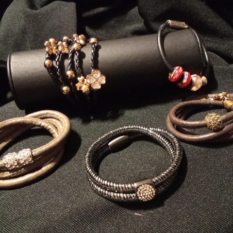 Imiteret lædersnor med vedhæng af blankpoleret aventurin.