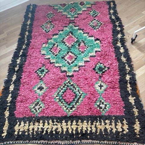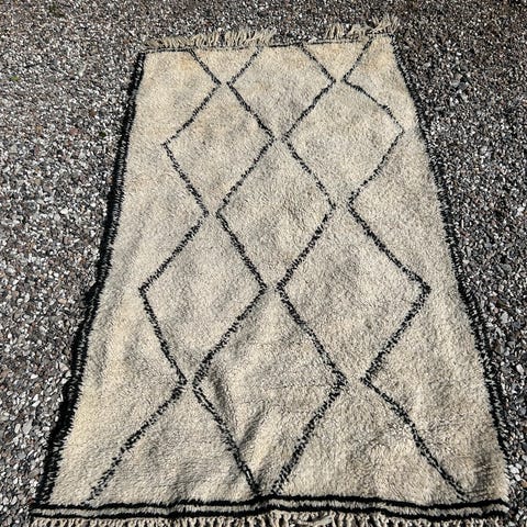 Originalt lækkert tykt marokkansk Beni Ourain tæppe i ren uld. Super fint med det enkle mønster i sort hvid.