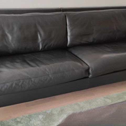 Flot lædersofa desiget af Jens Juul Eilersen, og produceret hos den danske producent, Eilersen. Betrukket med originalt sort kvalitetslæder. Længde: 210 x Dybde: 93 x Højde: 70/83 cm.