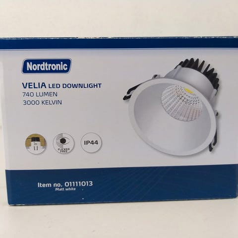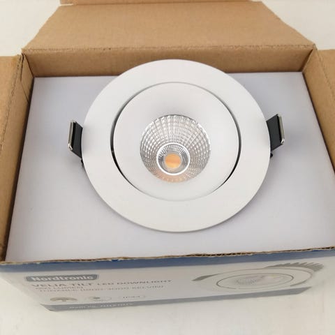 Med Velia Eco får du en komplet løsning til loftet, hvor både komfort, funktion og lang levetid er tænkt ind fra start. Den hvide indbygningsspot har et stilrent og diskret udtryk, der passer ind i de fleste rum – fra køkken og gang til stue og kontor. Den tilbagetrukne lyskilde sikrer et blændfrit lys, og med kipbar funktion samt mulighed for at vælge mellem tre farvetemperaturer, får du fuld kontrol over lysets udtryk og retning.