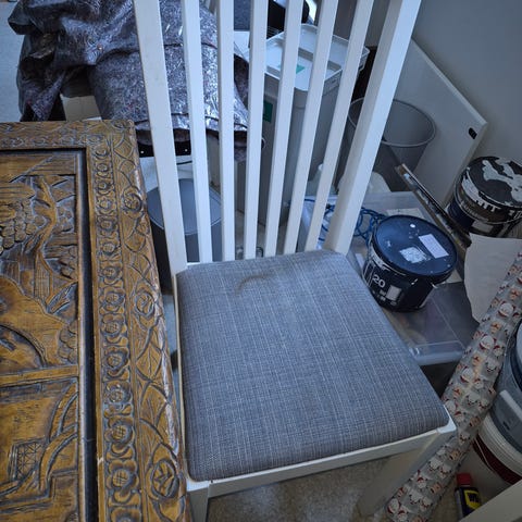 De er brugte og har brugsskrammer men fejler ikke noget . Sælges samlet for 50 kr pr stol .