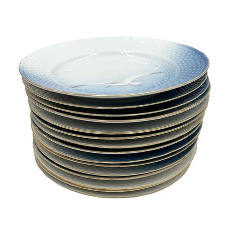 Smukt klassisk sæt fra B&G København med håndmalede måger og guldkant.