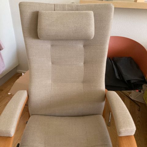 Lækreste lænestol fra mærket Farstrup. Med alle funktioner. Flot neutral beige farve. Skriv for flere billeder