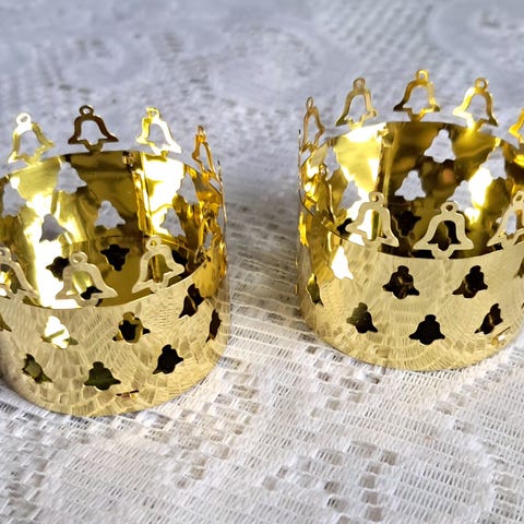 2 små fyrfadsstager/urtepotter i “guld”, med engel foran.