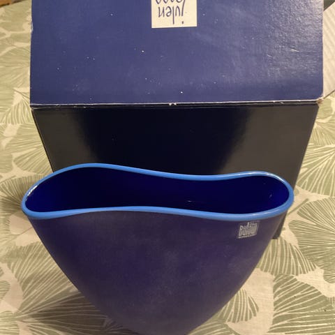 Blå bølget glas vase