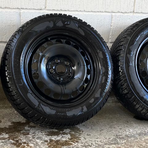 4 Brugte stål fælge, med gamle vinterdæk på. Dæk har ikke meget slidmønster tilbage.