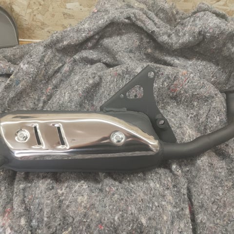 Ny original Yamaha Jog FS/AS udstødning, komplet med Varme Skjold, og ALLE skruer Skiver mv der til, alt nyt i originale Emballager.