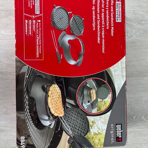 Vaffeljern og et redskab mere, støbejern (tungt) med langt håndtag/skaft