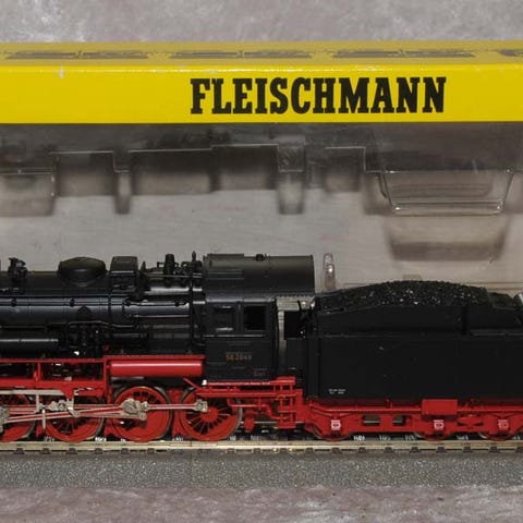 Lokomotiver er brugt men fremstå nærmset som nyt. Lokomotivet er til 2-leder ANALOG DC-drift. Der er kørelys på lokomotiver og tender, som skifter til køreretningen. Pæren til lyset foran på lokomotivet er sprunget, og jeg har desværre ikke en ny pære liggende. Der er monteret Fleischmann krog-kobling på tenderen. Kan efter ønske leveres med Fleischmann PROFI-kobling eller Märklin bøjlekobling. Leveres i original æske.