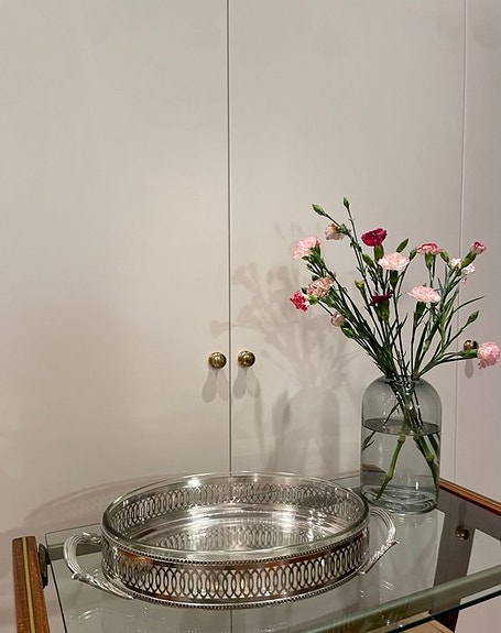 Sølpladet vinkøler til 2 flasker med isbeholder i midten.