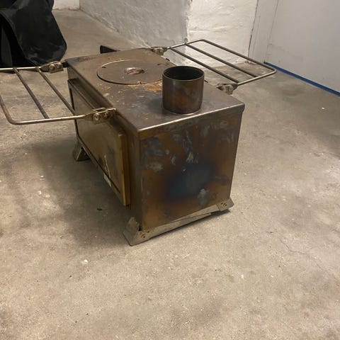 Efterår- og vinter friluftsliv med mulighed for "indendørs" brændeovn mv. Jeg har ikke brugt det med bål, men det er muligt.