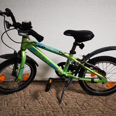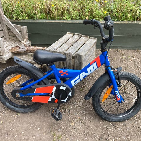 Fin 16 tommer drengecykel / børnecykel. Har lidt rust og gummi på det ene håndtag er løst.