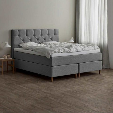 Wonderland Dobbeltseng i sort stof. Sengen består af to separate madrasser. Designet til brug i soveværelse, egnet til to personer. Materialet er stof med en sort farve.