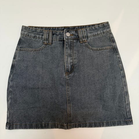 Fin lang asymetrisk nederdel. Med knap og bindebånd I siden.