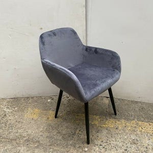 Lille lavrygget lænestol/Spisebordsstol,betrukket med turkis velour.
