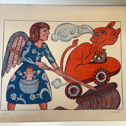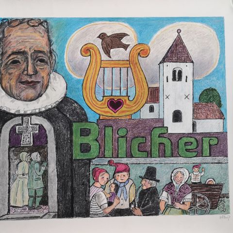 Flot Heerup Litografi "Kirkegårdsfantasi" i glas og ramme. God stand. Stammer fra dødsbo. Kan sendes. Kan leveres I Storkøbenhavn.