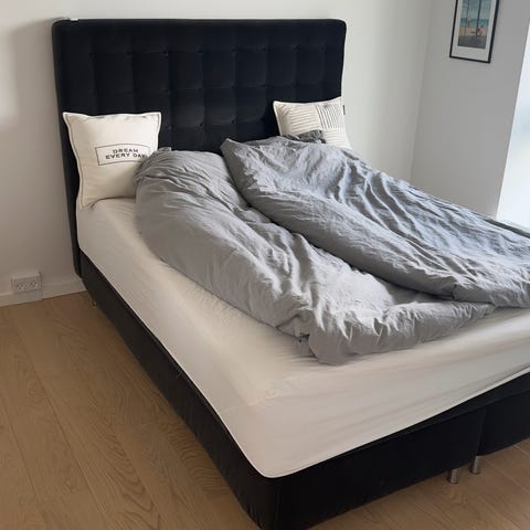 IKEA seng med målene 160x200 cm. Sengen er stort set ubrugt og fremstår derfor som ny. Det medfølger sengekappe og rullemadras beskytter.