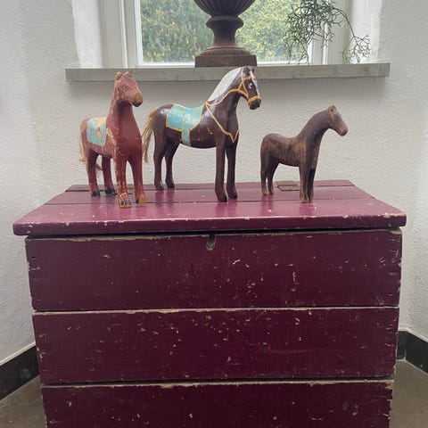 Gammel træ høkasse. Malet i hvid. I god stand. Mål: H 44cm / top B 60,5cm / top D 46,5cm / bund B 50,5cm /bund D 37,5cm.