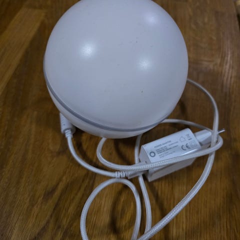 Homey Pro Smart Home Hub i hvid farve. Enhed til styring af smart home-enheder, kompatibel med flere protokoller. Designet til hjemmebrug med fokus på centraliseret kontrol af forskellige smarte enheder.
