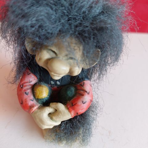 Lille Gjøl troll, Elvis figur - med sort hår, iført hvidt tøj og holdende en guitar.