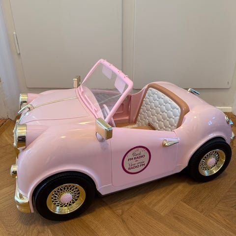 Stor Lyserød legetøjsbil med mange skønne detaljer. Passer til dukker på op til 64 cm.