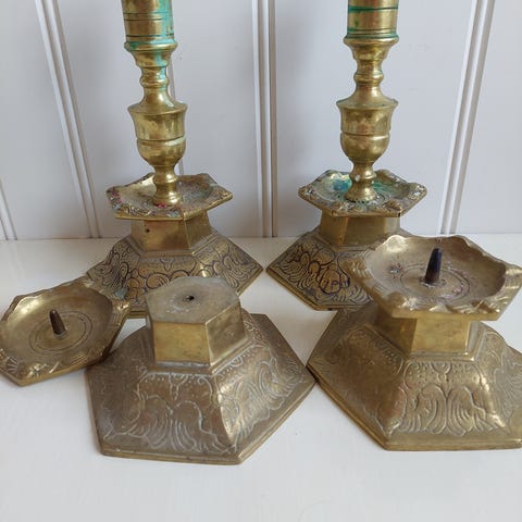 Sælger her nogle gamle Lysestager i MALM eller Messing ca.18.5cm høje