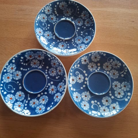 Testel, Kähler, Keramik. Uranglasur. Tekopper. 4 sæt med tekop, underkop og sidetallerken. Pris pr. sæt 350,-