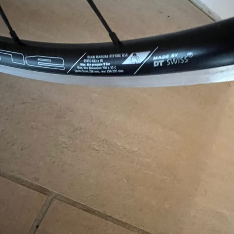Perfekt stand og ruller perfekt. Ingen slid på bremseflader eller andet. 25mm ringe i god stand sidder på, quick release og hjulpose medfølger.