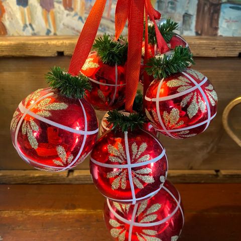 juleklokker i messing, gamle glaskugler og julepynt fra Daells Varehus.