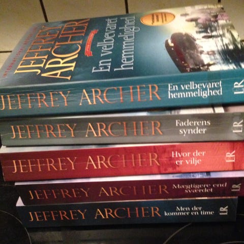 Jeffrey Archer To fjender Bog med illustreret omslag. Bogens omslag viser et maleri af en landskabsscene med køer ved en sø og en bygning i baggrunden. Teksten på bagsiden beskriver bogens indhold og forfatterens baggrund.