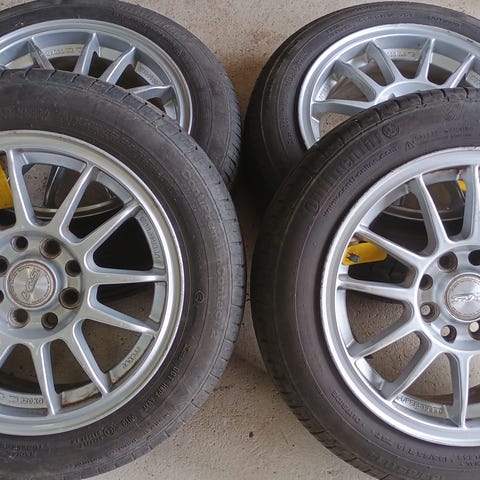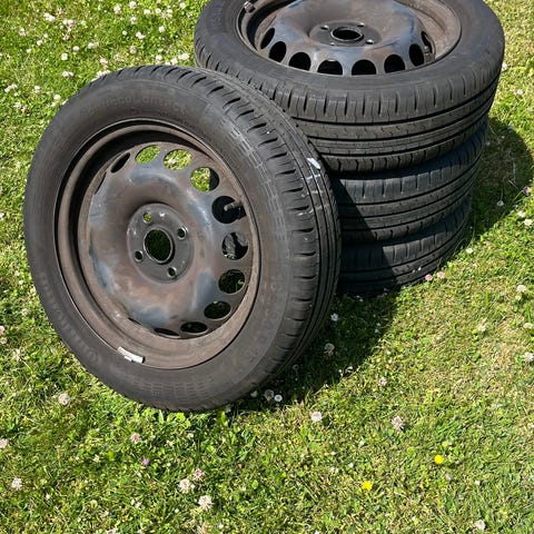 Komplet sæt sommerhjul på stålfælge ,passer på næsten alle minibilerne, Suzuki splash alto Swift , Mazda Toyota Aygo Yaris citroen C1 Peugeot 107-108, Hyundai i10 Kia picanto , giv et bud, kan måske leveres rundt i landet , Jylland Fyn og Sjælland