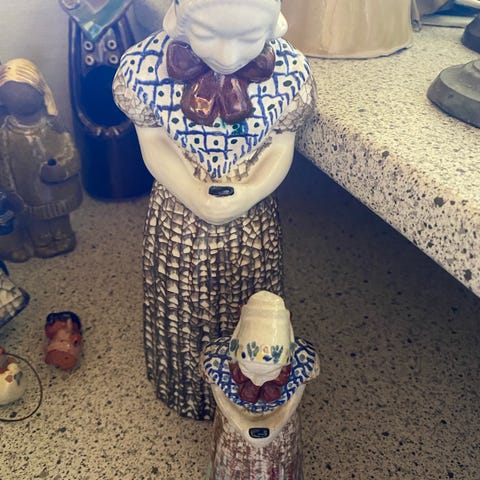 Smukt sæt med to originale figurer fra Michael Andersen & Søn, Bornholm. Klassisk dansk stentøj/keramik – udført som karakterfulde fiskeransigter.