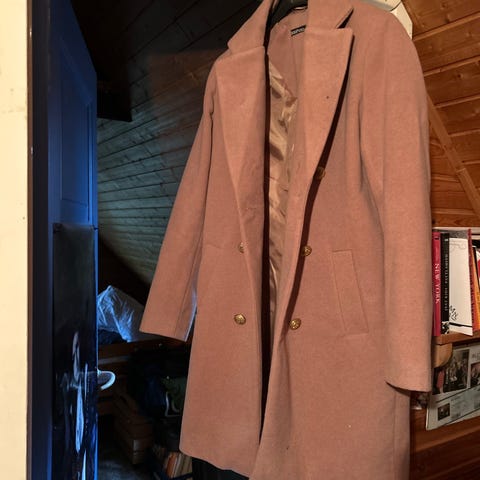 Boohoo Frakke i størrelse Medium til kvinder. Farven er beige, og jakken har et klassisk design med lange ærmer og en åben front. Materialet er blødt og egnet til køligere vejr.