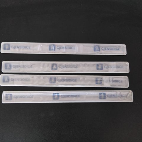 To bånd, hver med en refleksfunktion. Den ene bånd er grøn, og den anden er sølvfarvet. Begge kan rulles sammen og er beregnet til synlighed, typisk til brug om natten eller ved dårlig lys. Størrelsen på objektet er 34 cm. Kan bruges til sikkerhed og synlighed ved sport eller cykling.