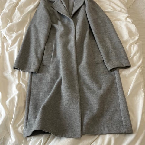H&M Frakke i sort farve, størrelse 36 til kvinder. Frakken er lavet af et materiale, der ikke er specificeret, men fremstår som en klassisk, lang model med knaplukning foran. Velegnet til brug som yderbeklædning i køligere vejr.