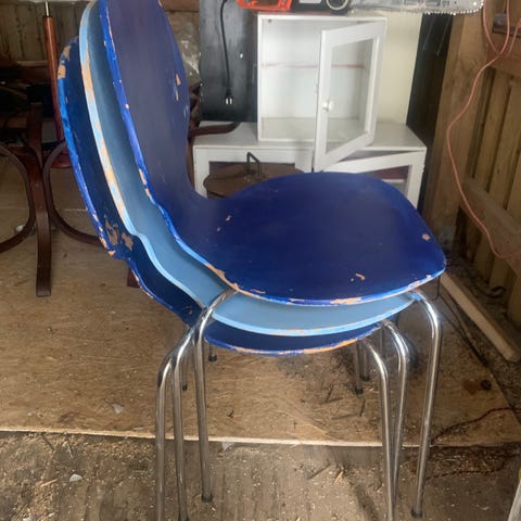 Asketræfarvede skalstole sælges samlet eller enkeltvis kr. 20/stk