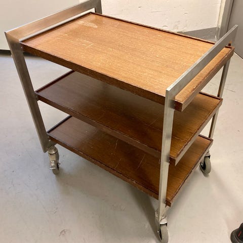 SOLGT - Vintage Rullebord med Skuffe og Hjul