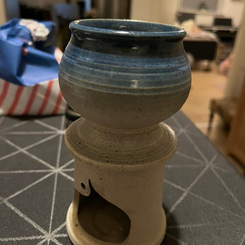Flot fyrfadsstage i keramik i en skøn turkis farve med den lækreste glasur af Peter Fitzner.