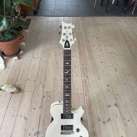 Meget velholdt, stort set som ny. Flamed top i Tobacco sunburst. Halsen er glued on som på originalen. Grover stemmemekanikker som på en Epiphone Les Paul Standard. Produceret af J & D Brothers.