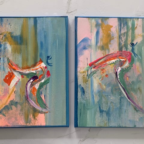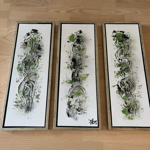 Abstrakt Maleri Sæt 3 stk. Brun Hvid Sort