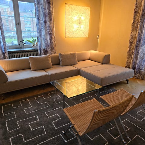Sofaen er både komfortabel og tidløs i designet, og den kommer fra et røg- og dyrefrit hjem. Den trænger til en rens, men er ellers i rigtig fin stand og behagelig at sidde i.