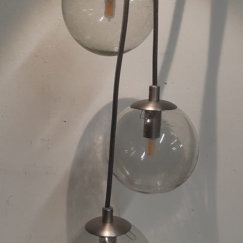 Unik mundblæst glaspendel i genbrugsglas, designet af Pernille Bülow og håndlavet på vores eget værksted i Nexø, Bornholm.